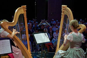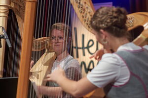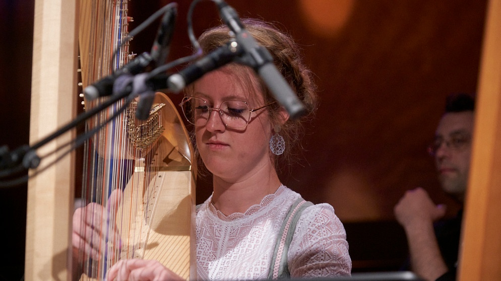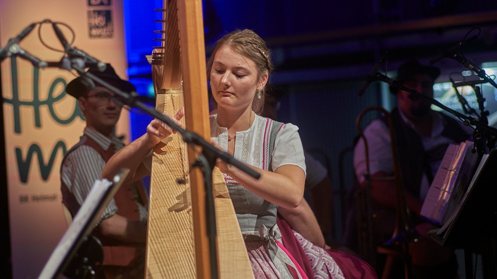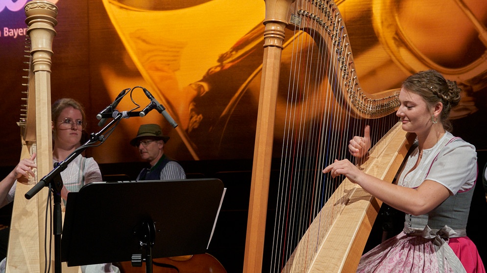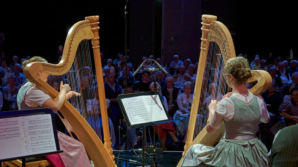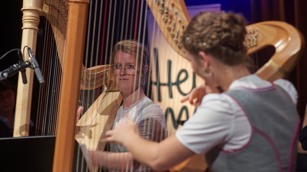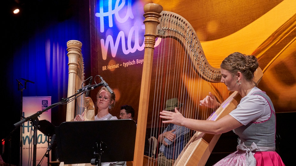 Harfenduo "Flinke Finger" (Lena Neuner & Johanna Pongratz, Klasse Rita Reiter) beim Treffpunkt Volksmusik aus dem BR-Studio 1 (25.07.25)