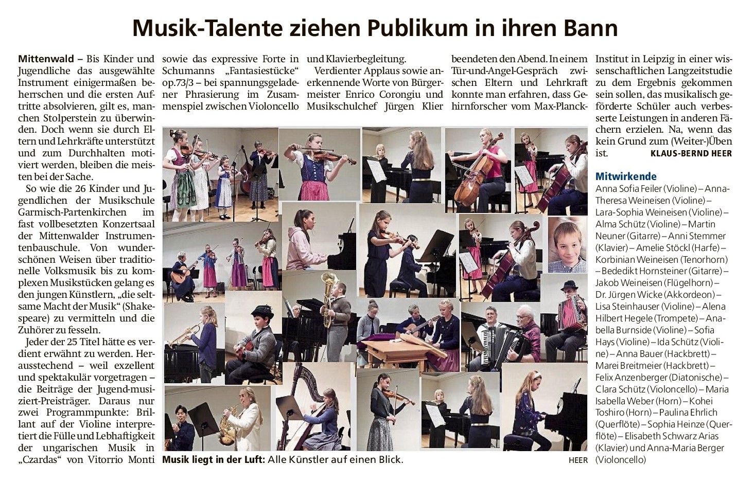 Musiktalente ziehen Publikum in ihren Bann - Zweigstellenkonzert Mittenwald 30.11.25