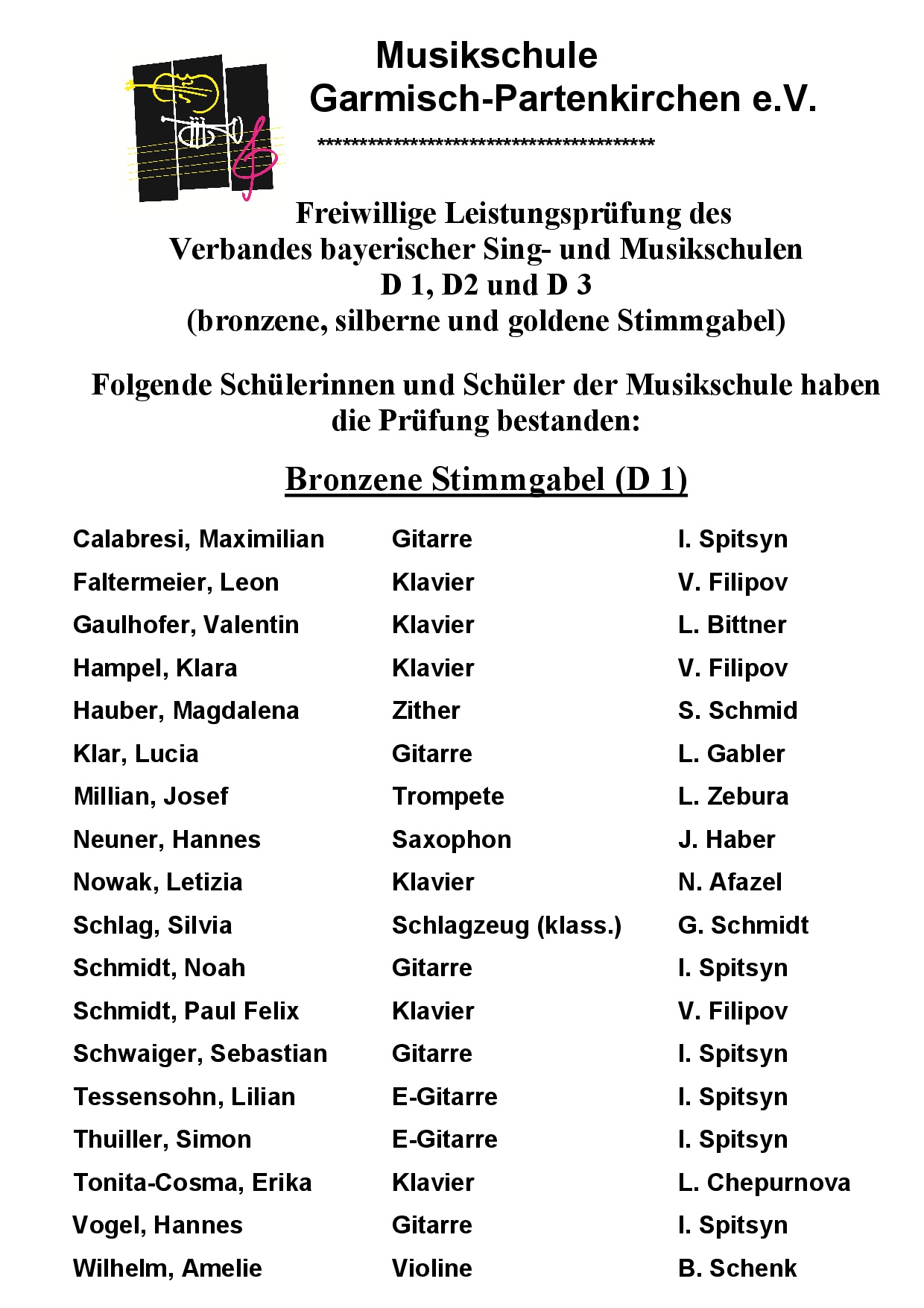 Wir gratulieren zu den bestandenen Leistungsprüfungen!